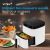 12 предустановленных программ обжаривают, запекают, томят и разогревают продукты без долгих настроек. Диапазон 50–200 °C подходит для сушки трав, карамелизации фруктов и быстрого ужина из хрустящих крыльев.